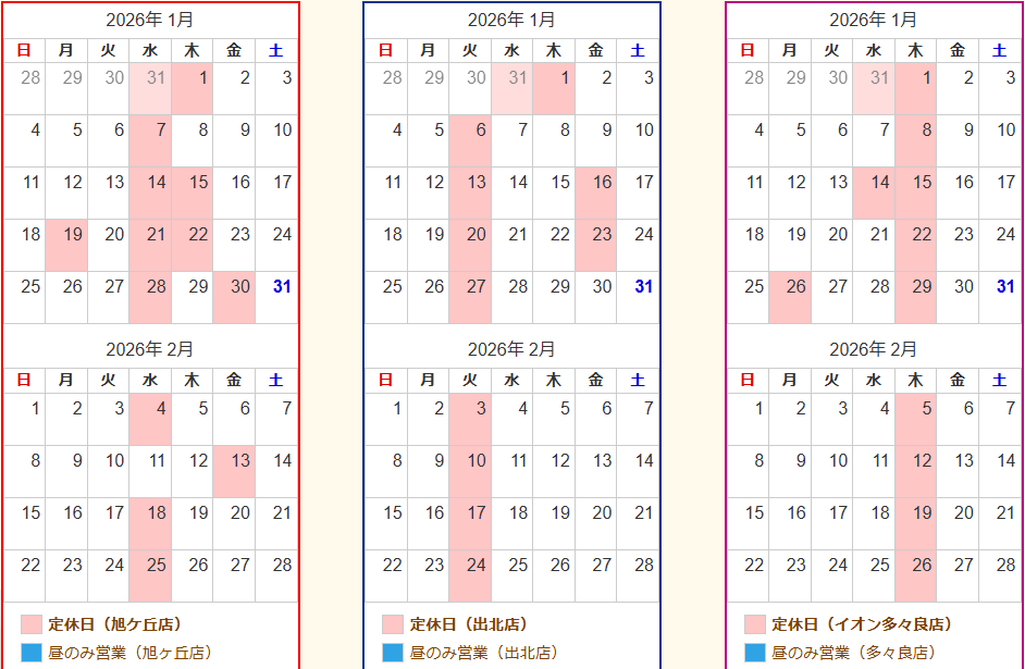 さて、2月は11日に建国記念日で祭日が入るため、旭ヶ丘店の定休日を変更させていただいております。