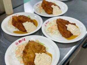 特にチキン南蛮に添えているキャベツの千切りは無くてはならない存在ですね。
