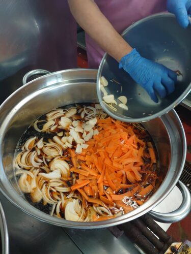 こんなにたっぷりの新鮮野菜から旨味と香りを出しています。