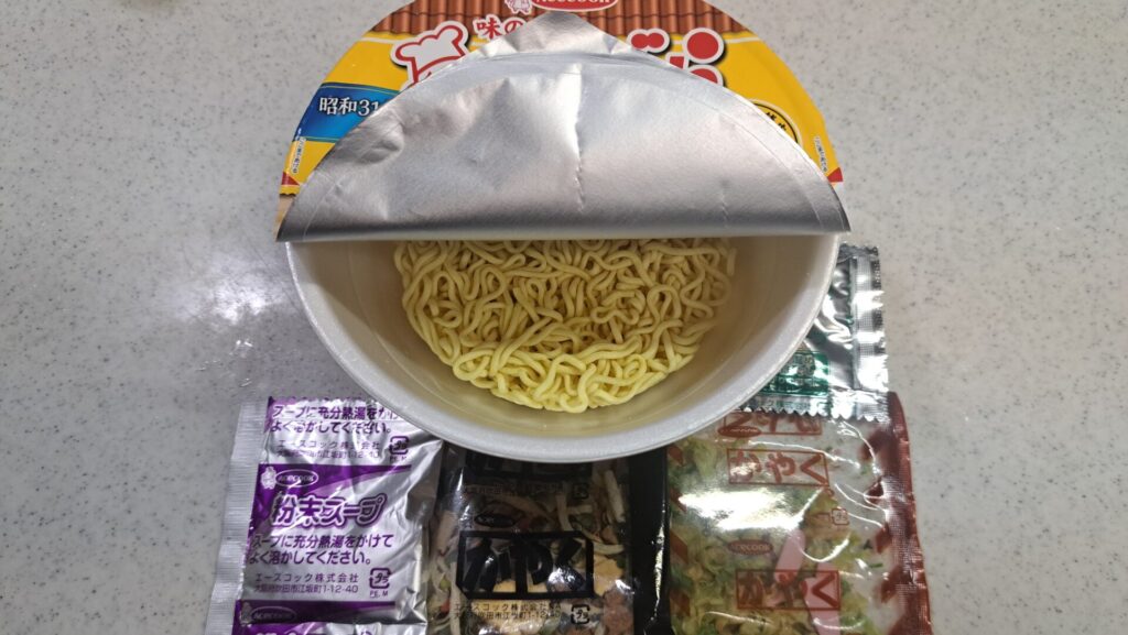 このカップ麺、実はかやくの袋が2つもついていて具材の量が多いんですよ。