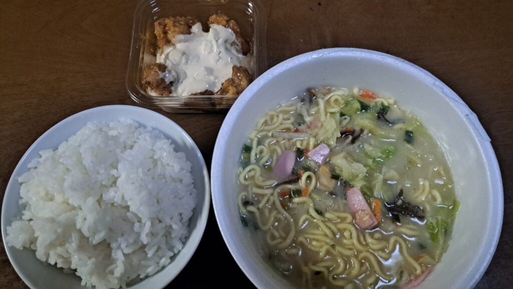 そして一緒にチキン南蛮も買ってみましたので、早速カップ麺にお湯を注いでみましょう。