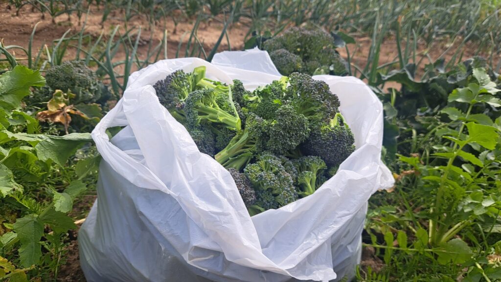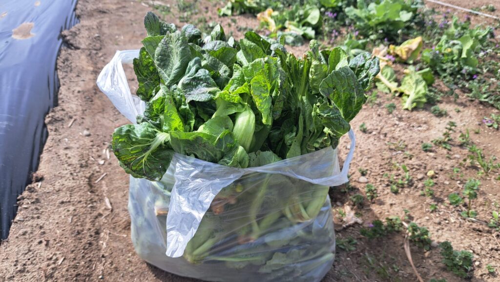 中に入ってみると、ブロッコリーや高菜、わけぎなどいろいろ育てていてまさに収穫どき❗
