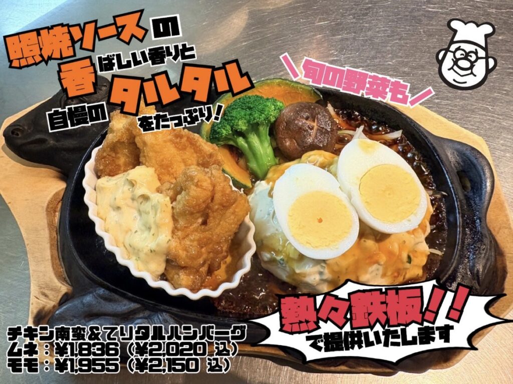 てりたるハンバーグはおぐら自慢のタルタルがたっぷりと粗挽きハンバーグに乗ってるので、絶対にお腹も心も満足して頂ける商品となっています😳