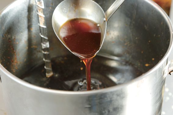 油で揚げたあと、すぐに甘酢に漬け込むため、