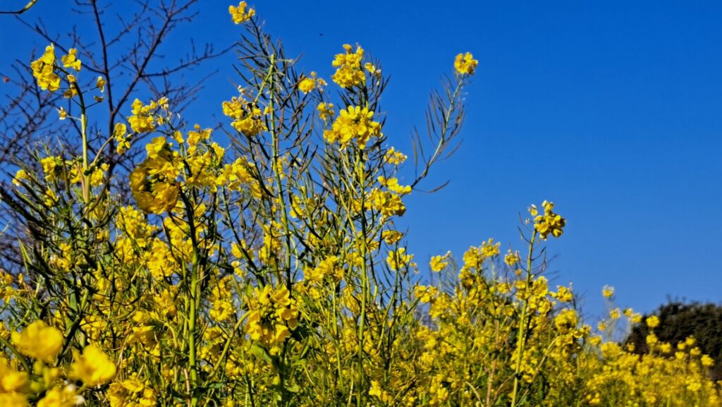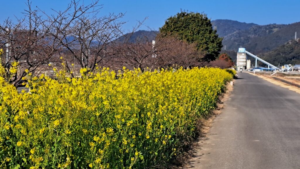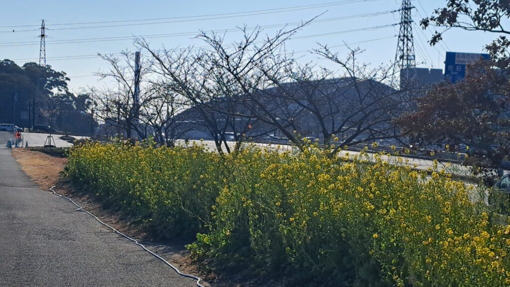 桜はまだ咲いていませんが、菜の花は綺麗に咲いているので、ある意味レアな景色なので行ってみました。