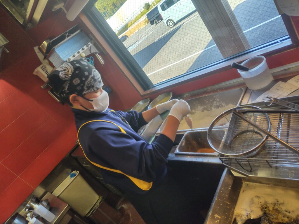 初めて見る大量の油に、お肉を入れるのはとても緊張していました。